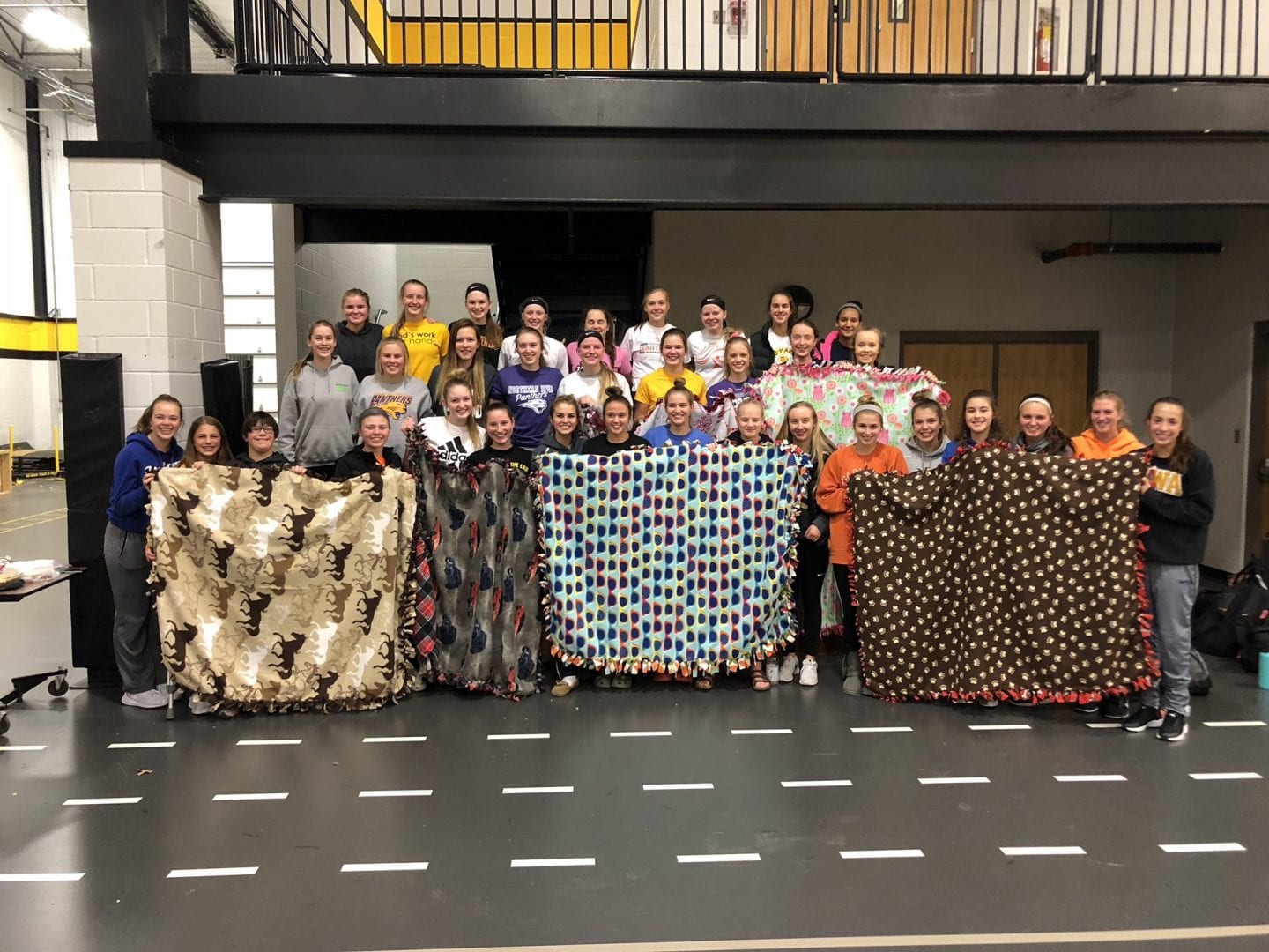 Tuesday night the Waverly-Shell Rock and Clarksville girls basketball teams participated in an Iowa Hall of Pride Scrimmage. Scores are not recorded for the event, but we say the winners were the children. After the scrimmage the Go-Hawks and Indians worked together to create 20 tie blankets to donate to the University of Iowa Stead Family Children’s Hospital.